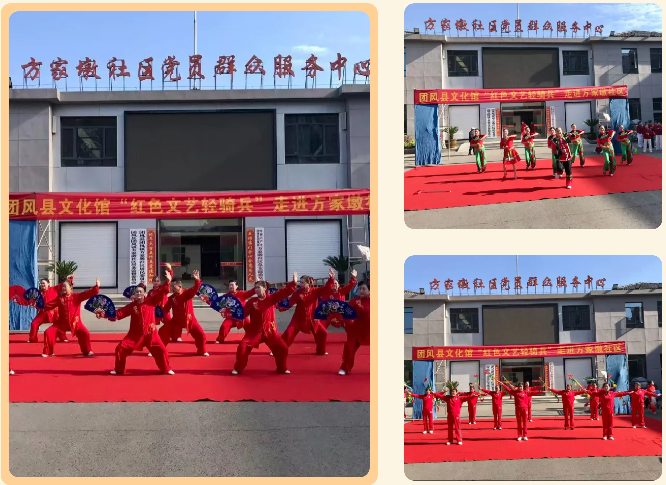 近日,团风县文化馆“红色文艺轻骑兵”小分队走进方家墩社区,为居民带来了一场精彩纷呈的文化演出,用歌声、舞蹈和戏曲传递红色精神,丰富群众精神文化生活,受到社区居民的热烈欢迎。