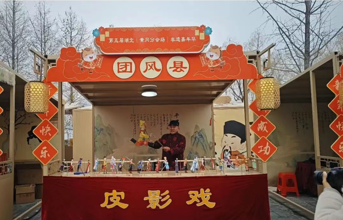 团风摊位不仅陈列着各式精致的皮影文创产品供人选购,还现场展示皮影操控技巧,让观众近距离感受非遗技艺的精妙。